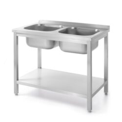 Stôl s 2 drezami a policou HENDI, Kitchen Line 60*100