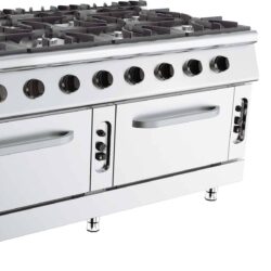 93942 € s DPH (77638 € bez DPH) Viac infoTento krásne spracovaný plynový sporák je korunným klenotom profesionálneho radu Cooking Range 900 od spoločnosti Maxima. Tento robustný spotrebič, vybavený šiestimi horákmi, priestrannou rúrou a skriňovým dnom s dvierkami, je schopný odolať záťaži, ktorú profesionálna kuchyňa musí zvládnuť. Na túto robustnú konštrukciu prvotriednej kvality sa môže spoľahnúť každá gastronomická kuchyňa.