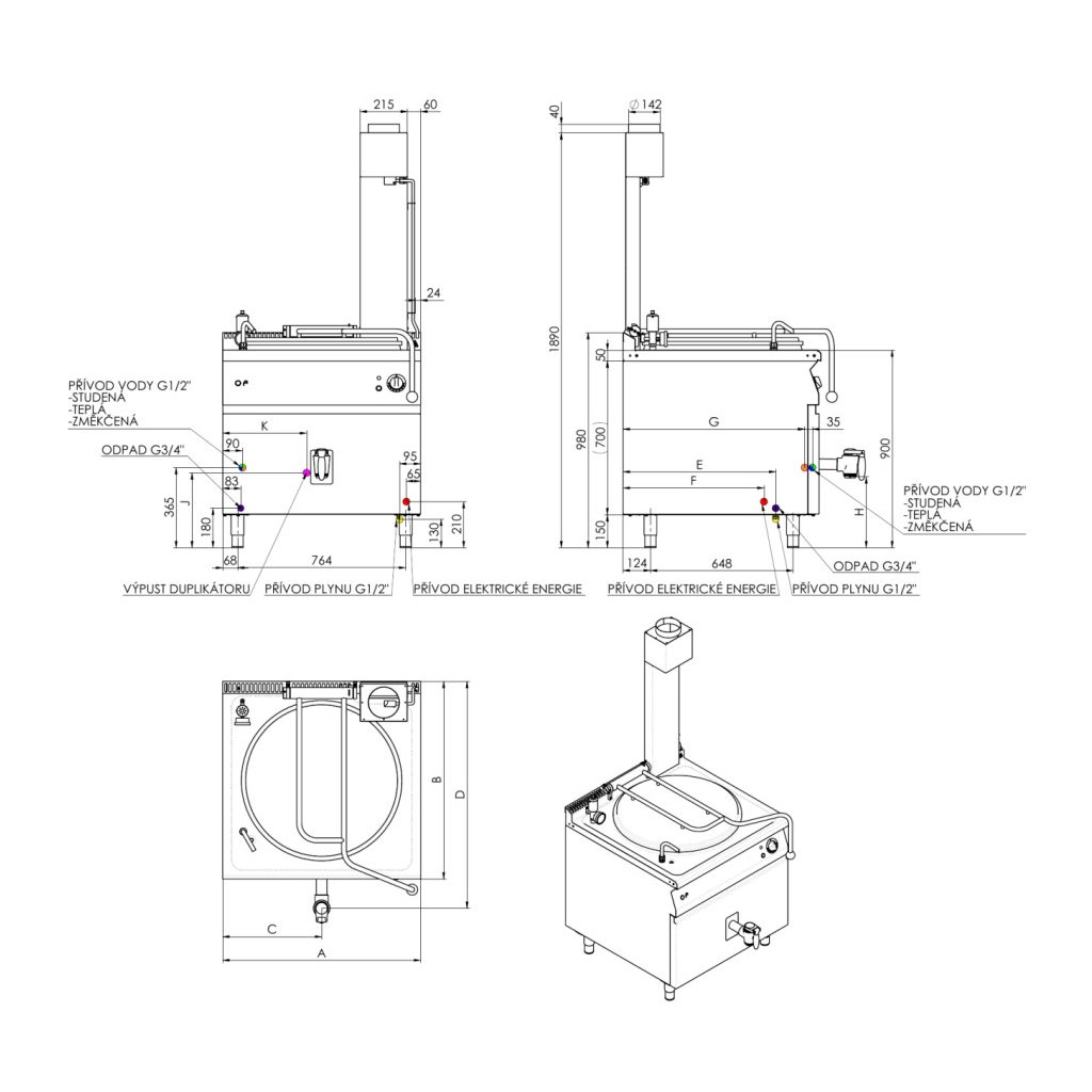 Plynový kotol s duplikátorom ktorý zabraňuje pripaľovaniu je vhodný na varenie všetkých druhov potravín v profesionálnych veľkokuchyniach. Zvlášť vhodný je na varenie zemiakov, knedlí, cestovín, polievok čajov alebo vývarov.