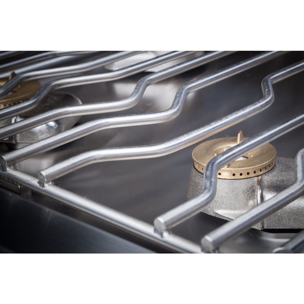Celonerezová konštrukcia z kvalitnej potravinárskej ocele AISI 304 – EN 1.4301. Horáky vybavené zapaľovacou elektródou, zapaľovacím horáčikom a termoelektrickou poistkou. Hlavný uzáver plynu na čele sporáka umožňuje rýchle a bezpečné vypnutie. Podstavce v niekoľkých variantoch sú opatrené nastavovateľnými nožičkami.