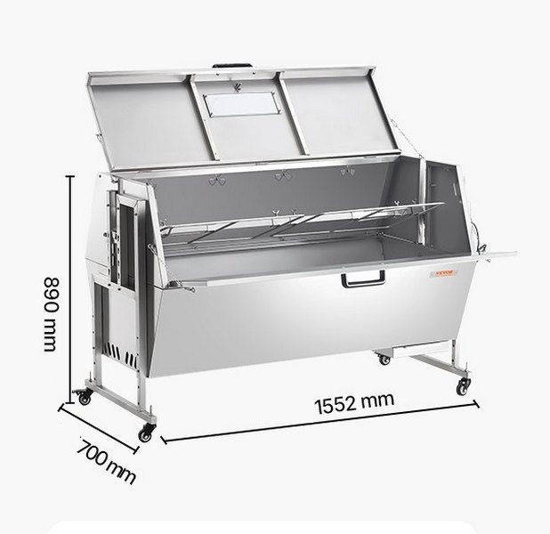 - 142 cm Spliced Spit Rod: Táto tyč pojme ingrediencie väčšej veľkosti, takže obsluha je pohodlná. Dizajn veka šetrí viac miesta a ľahšie sa skladuje.