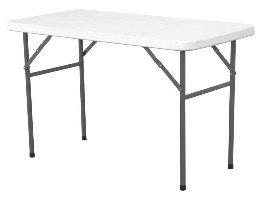Viacúčelový skladaný nábytok určený na vnútorné aj vonkajšie použitie Doska stola vyrobená z HDPE polyetylénu Kovový rám s práškovo lakovanou ochrannou vrstvou Jednoduché skladovanie a transport Ľahko sa čistí, odolný voči znečisteniu Skladací cateringový nábytok