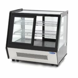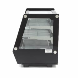 Vďaka tejto luxusne spracovanej chladničke môžu hostia a zákazníci ihneď vidieť, aké produkty ponúkate. Môže sa pochváliť objemom 125 litrov, štyrmi sklenenými plochami po celom obvode a vstavaným LED osvetlením. Predná aj zadná časť je vybavená hladko posuvnými dverami. Hostia si tak môžu z chladničky sami ľahko vybrať produkty, ako sú sendviče, koláče a ďalšie občerstvenie. V zadnej časti potom posuvné dvere uľahčujú doplňovanie alebo výmenu produktov. Dve chrómované police vo vitríne sú výškovo nastaviteľné.