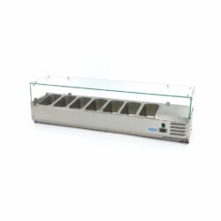 Pultová prípravná chladnička je ideálna na každodenné intenzívne používanie v každej profesionálnej kuchyni. Je možné do nej umiestniť sedem nádob GN o veľkosti 1/3, ktoré pomáhajú udržiavať ingrediencie v správnej teplote a pripravené na okamžité použitie. Pultová prípravná chladnička sa dobre hodí na úlohy, ako je rýchle plnenie pripravovaných sendvičov, pridávanie poliev na pizzu alebo príprava šalátov. Nádoby GN a veka nie sú súčasťou dodávky, ale je možné ich objednať samostatne prostredníctvom našich webových stránok.