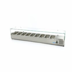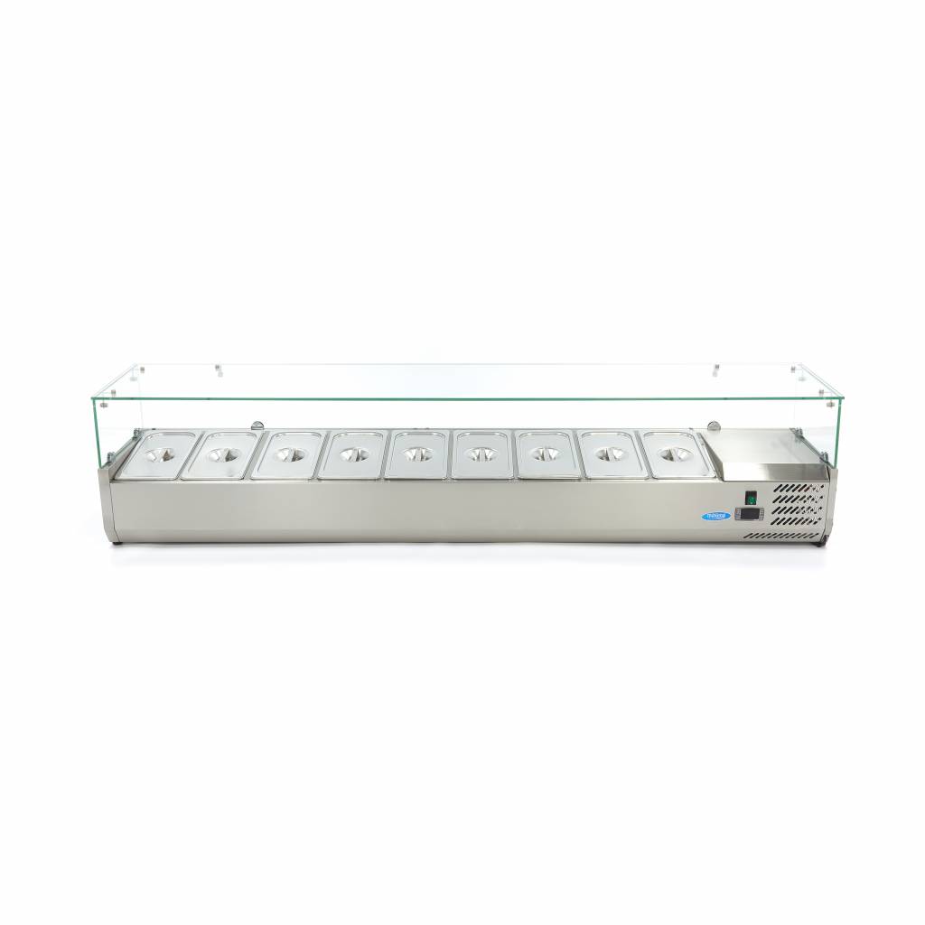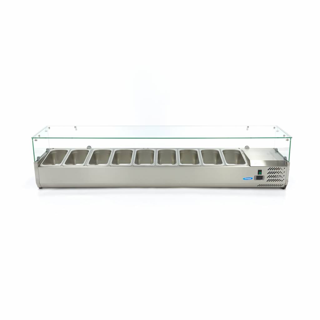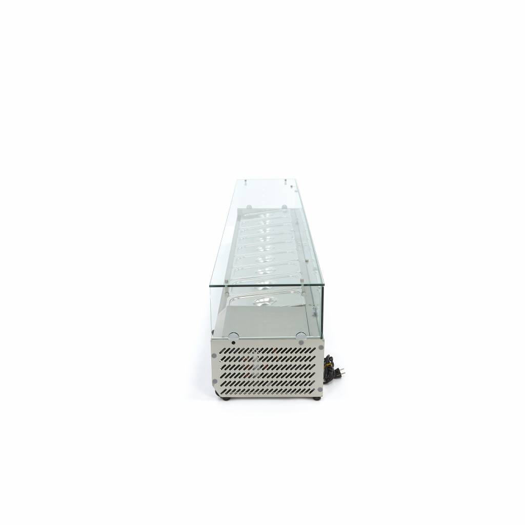 Pultová prípravná chladnička je ideálna na každodenné intenzívne používanie v každej profesionálnej kuchyni. Je možné do nej umiestniť deväť nádob GN o veľkosti 1/3, ktoré pomáhajú udržiavať ingrediencie v správnej teplote a pripravené na okamžité použitie. Pultová prípravná chladnička sa dobre hodí na úlohy, ako je rýchle plnenie pripravovaných sendvičov, pridávanie poliev na pizzu alebo príprava šalátov. Nádoby GN a veka nie sú súčasťou dodávky, ale je možné ich objednať samostatne prostredníctvom našich webových stránok.