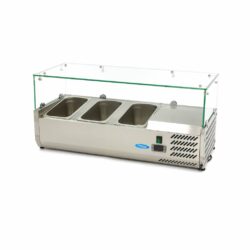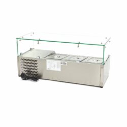 Pultová chladnička je ideálna na intenzívne použitie v každej profesionálnej kuchyni. Je možné do nej umiestniť tri nádoby o veľkosti 1/3 GN, ktoré pomáhajú udržiavať ingrediencie pri správnej teplote a sú pripravené na okamžité použitie. Pultová prípravná chladnička je vhodná aj na práce, ako je rýchle plnenie sendvičov a príprava pizze a šalátov. Nádoby GN a veka nie sú súčasťou dodávky, ale je možné ich objednať samostatne prostredníctvom nášho internetového obchodu.