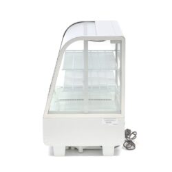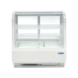 Táto vitrína so zakriveným oknom v prednej časti je prínosom pre každú pekáreň, kaviareň, brasseriu alebo iné stravovacie zariadenie. Vďaka objemu 100 litrov a dvom výškovo nastaviteľným policam môžete chladiť rôzne výrobky. Vďaka LED osvetleniu vo vnútri a štyrom okienkom na každej strane sú výrobky krásne prezentované. Posuvné dvere v zadnej časti chladiacej vitríny uľahčujú pridávanie alebo odoberanie tovaru.