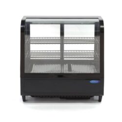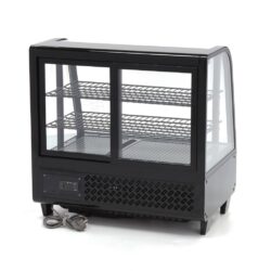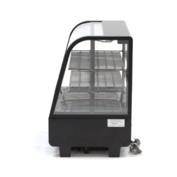 Táto vitrína so zakriveným čelným oknom je prínosom pre každú pekáreň, kaviareň, brasseriu alebo iné stravovacie zariadenie. Vďaka objemu 100 litrov a dvom výškovo nastaviteľným policam môžete chladiť rôzne výrobky. Vďaka LED osvetleniu vo vnútri a štyrom okienkom na každej strane sú výrobky krásne prezentované a dobre viditeľné. Posuvné dvierka v zadnej časti umožňujú ľahké pridávanie alebo odoberanie výrobkov.