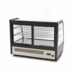 Chladnička Premium sa môže pochváliť veľkým objemom 160 litrov a je krásne spracovaná. Je ideálny na použitie v reštauráciách, hoteloch, kaviarňach a ďalších stravovacích zariadeniach, kde potrebujete vystaviť potraviny. Je vybavená dvoma chrómovanými policami, ktoré sú výškovo nastaviteľné, takže si ju môžete prispôsobiť svojim potrebám. Obsahuje aj okná s dvojitým sklom a zabudované LED osvetlenie vo vnútri. Vďaka tomu sa dobre hodí na vystavovanie tort, čokolád a ďalšieho občerstvenia pre zákazníkov a hostí. V zadnej časti sú dvoje posuvné dvere, takže je možné ľahko a rýchlo pridávať alebo odoberať predmety podľa potreby.