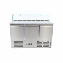 Táto profesionálna chladnička na prípravu pizze má chladiacu kapacitu 400 l, ktorá udrží ingrediencie v chlade čo najdlhšie. Za tromi dverami z nerezovej ocele sa nachádza nastaviteľná polica, takže si môžete prispôsobiť usporiadanie presne podľa svojich predstáv. Je tiež možné objednať ďalšie police a pridať ich tam, kde je to potrebné. Môžete si dokonca objednať špeciálne zásuvky na cesto, ktoré udržia cesto na pizzu vychladené, kým nie je potreba. Táto chladnička na prípravu pizze funguje najlepšie pri okolitej teplote 32 °C. Má chladiaci systém, ktorý zahŕňa ventilátor, kompresor Zanussi a výparník s penou na troch stranách a používa chladivo R600a, ktoré neobsahuje freóny. Chladiaci cyklus funguje tak, aby bola zaistená minimálna tvorba ľadu a. Pomocou digitálneho termostatu môžete nastaviť teplotu v rozmedzí 0 až 10 °C.