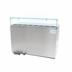Pokiaľ každý deň pripravujete čerstvú pizzu s tými najchutnejšími náplňami, potom je táto krásna chladená prípravná stanica pre vašu kuchyňu nepostrádateľná. Vďaka žulovému pultu tejto chladničky na pizzu sa cesto nelepí a môže byť vyvaľkané a pripravené na použitie. Vďaka chladiacej vitríne, ktorá je pripevnená na hornej strane, sú všetky vaše obľúbené náplne nielen vidieť, ale aj zostávajú chladné až do poslednej sekundy. Tento prémiový kuchynský spotrebič sa dodáva aj s nerezovými podperami na uchytenie GN nádob, hoci nádoby a veká nie sú súčasťou balenia. Tie je možné objednať samostatne prostredníctvom internetového obchodu.