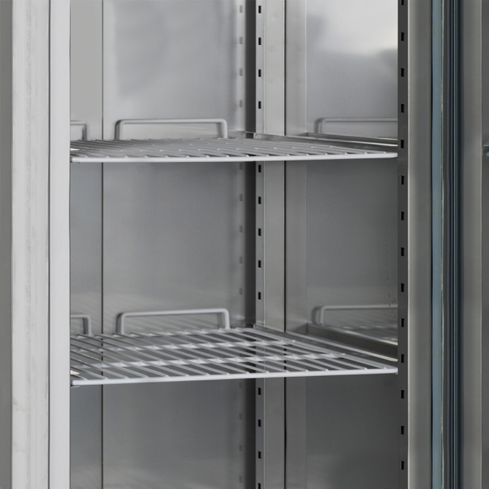 Dvojdverová nerezová chladiaca skriňa pre profesionálne kuchyne RK1420X1 je energeticky úsporná chladiaca skriňa pre profesionálne prostredie. Má o 53 % nižšiu spotrebu energie v porovnaní s predchádzajúcim modelom RK710. Táto chladiaca skriňa s plnými dverami je vyrobená z odolnej nerezovej ocele SS304, čo je zárukou, že vydrží podmienky rušnej kuchyne. Je dodávaná s nastaviteľnými policami GN2/1 a samzatváracie dvere s 105 ° zarážkou pre ľahký prístup a plnenie. Skriňa je vybavená odolnými kolieskami, ktoré sú užitočné pri čistení. Má účinný ventilačný chladiaci systém, ktorý zaisťuje čerstvosť obsahu, a teplotu je možné ľahko nastaviť na digitálnom ovládači. Ovládač ponúka NFC konektivitu a funkciu Bluetooth. To znamená, že pomocou aplikácie môžete ovládať osvetlenie, sledovať teplotu v skrini, a dokonca exportovať dáta pre ľahké podávanie správ.