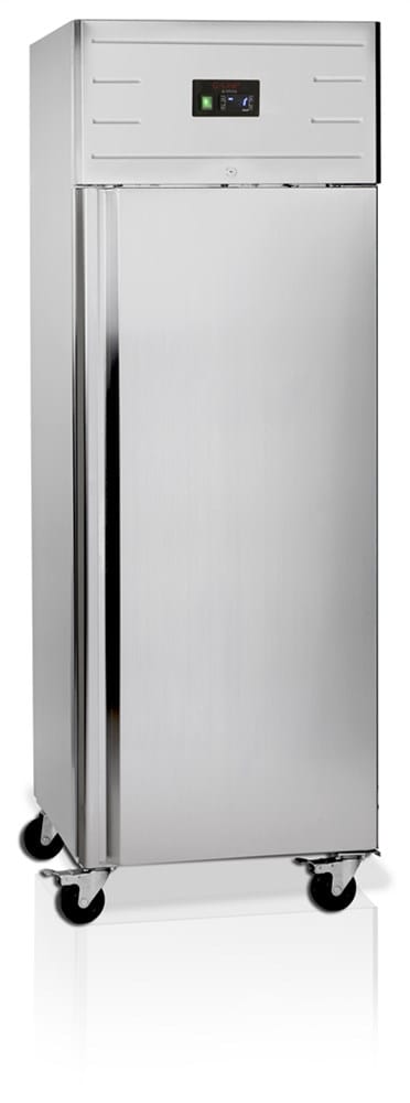 plné dvere, je možné meniť otváranie, ventilované chladenie, zámok, samozatváracie dvere, nastaviteľné police GN 2/1, odolné kolieska