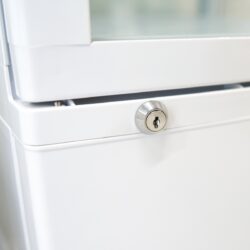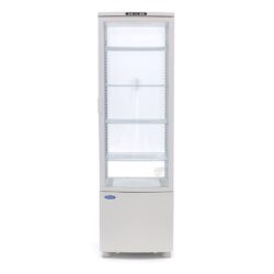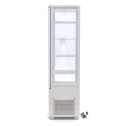 Táto vysoko kvalitná profesionálna chladnička má veľký objem 235 litrov a ponúka priestor na vystavenie niekoľkých potravín. Možnosť prezentovať svoje výrobky je v potravinárstve dôležitá, pretože zákazníci radi vidia, aké majú možnosti. Vďaka veľkým oknám na každej strane a energeticky úspornému vnútornému LED osvetleniu budú výrobky vynikať. Táto chladiaca vitrína sa dodáva so štyrmi nastaviteľnými policami. Navyše si môžete prostredníctvom našich webových stránok objednať ďalšie police, pokiaľ potrebujete kapacitu chladničky ešte zvýšiť. Vitrínu je možné tiež uzamknúť pomocou vstavaného zámku, ktorý sa dodáva s dvoma kľúčmi.