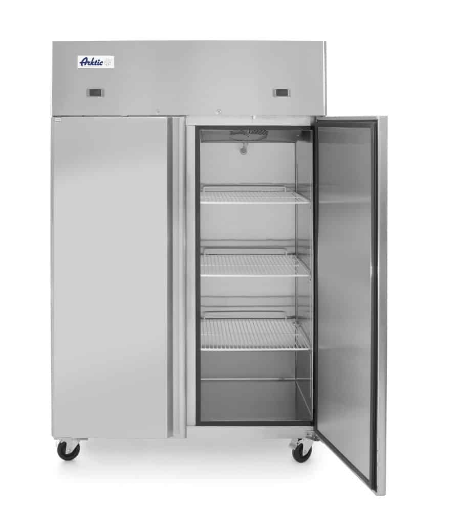 Dvojdverová chladiaca a mraziaca skriňa (420 + 420 l) Profi line je najvyššou kvalitou prezentovaného modelu. Séria Profi Line sa odporúča pre cateringové spoločnosti a veľké reštaurácie, ktoré spĺňajú najvyššie očakávania zákazníkov. Plášť skrine vyrobený z kvalitnej nehrdzavejúcej ocele nielenže veľmi dobre vyzerá a umožňuje jej zapadnutie do takmer každého prostredia, ale taktiež sa veľmi ľahko čistí. Zadná vonkajšia stena je vyrobená z pozinkovanej ocele. Samozatváracie dvere sú vybavené zámkom a pohodlnou profilovanou kľučkou. V chladiacom boxe bolo použité nútené chladenie, asistuje mu vnútorný ventilátor so spodnou jednotkou, ktorého usporiadanie používateľom uľahčuje čistenie. Skriňa je vybavená 4 kolieskami, z toho 2 s brzdou.
