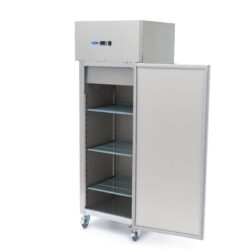 Táto chladnička je vybavená tromi robustnými nastaviteľnými policami (55 x 53 cm), ktoré sú ideálne na uloženie najrôznejších surovín. Súčasťou samozatváracích dverí je antibakteriálne gumové tesnenie a zámok s dvoma kľúčmi pre väčšiu bezpečnosť. Zaoblené vnútorné rohy zabraňujú hromadeniu nečistôt, takže údržba hygieny je jednoduchá. Jednotka je namontovaná na štyroch kolieskach, z toho dvoch s brzdou, takže sa ľahko premiestňuje a je bezpečná, keď je na svojom mieste. LED osvetlenie zaisťuje jasný prehľad o obsahu, akonáhle sa otvoria dvere.