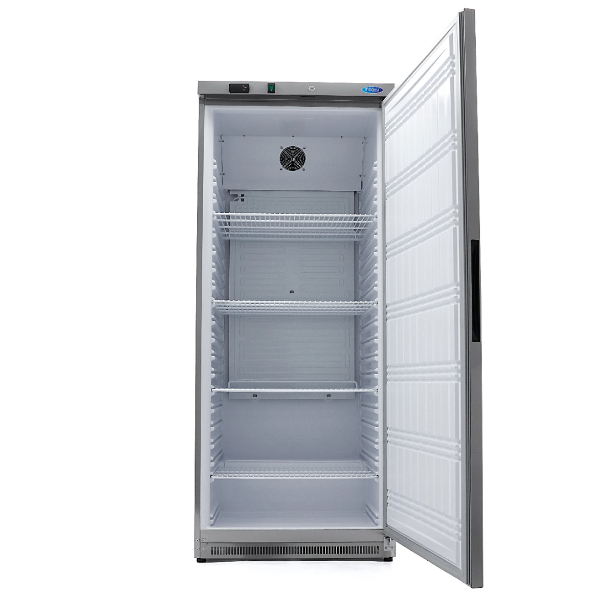 Pri práci s čerstvými surovinami je dôležité mať k dispozícii chladničku, ktorá všetko udrží čo najdlhšie v chlade. Táto profesionálna chladnička z nerezovej ocele má celkový objem 600 la je vybavená štyrmi nastaviteľnými policami. Vďaka tomu si môžete zvoliť najlepšie usporiadanie podľa svojich potrieb. Ponúka tiež možnosť flexibilne rozšíriť počet políc o ďalšie priehradky. Súčasťou dverí je zámok pre väčšie pohodlie.