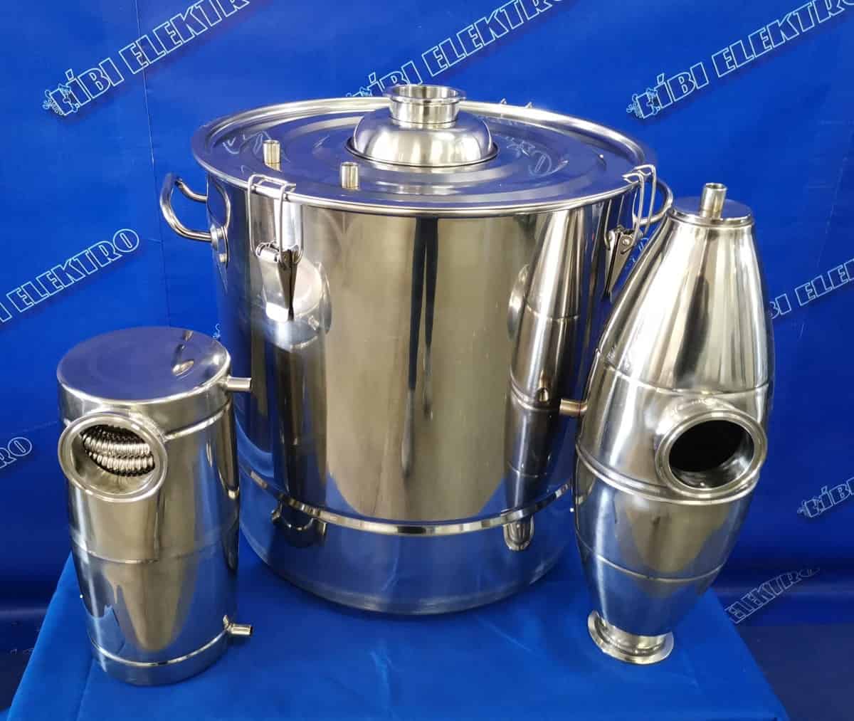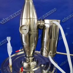 - Kompletná sada na destiláciu, vhodná pre začiatočníkov i odborníkov. Môže byť použitá aj na extrakciu rastlinných výťažkov na liečebné účely. Je možné zahrievať indukčným varičom alebo ďalšími varidlami vďaka zosilnenému dnu. Spodné sito zabraňuje pripaľovaniu 4násobné chladenie je integrované v 2 chladiacich nádobách