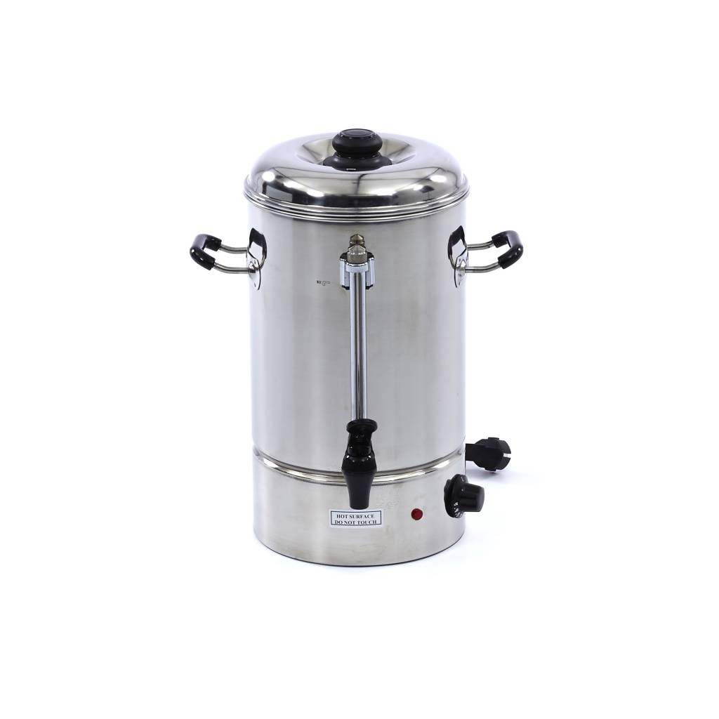 Tento praktický dávkovač horúcej vody je ideálny na prípravu veľkého množstva horúcich nápojov, napríklad šálok čaju, pre veľké skupiny ľudí. Zrazu pojme až 10 litrov vody a udržuje ju v ideálnej teplote, takže je pripravená na použitie, kedykoľvek je potreba. Vždy tak budete mať v zásobe dostatok horúcej vody, aby ste mohli hostí ihneď obslúžiť. Ide o dokonalý kuchynský spotrebič pre každé stravovacie zariadenie alebo akciu. Veko je opatrené gombíkom, ktorý uľahčuje jeho zdvíhanie, a pretože je vyrobené z plastu, nezahrieva sa. Vďaka praktickým úchytom na prenášanie na bočnej strane, ktoré sú dobre izolované, je tiež možné dávkovač prenášať bez toho, aby ste sa popálili. Varenie vody trvá 20-30 minút, kým je voda dostatočne horúca na prípravu dokonalej šálky čaju.