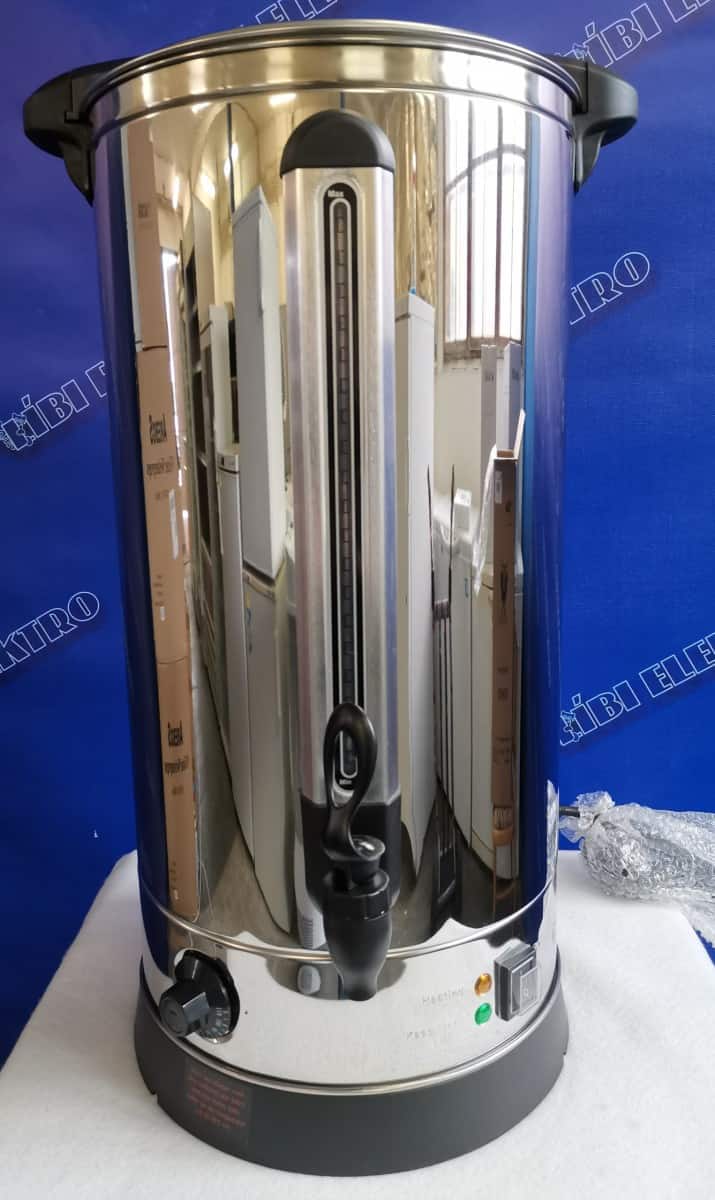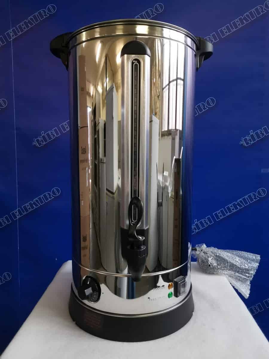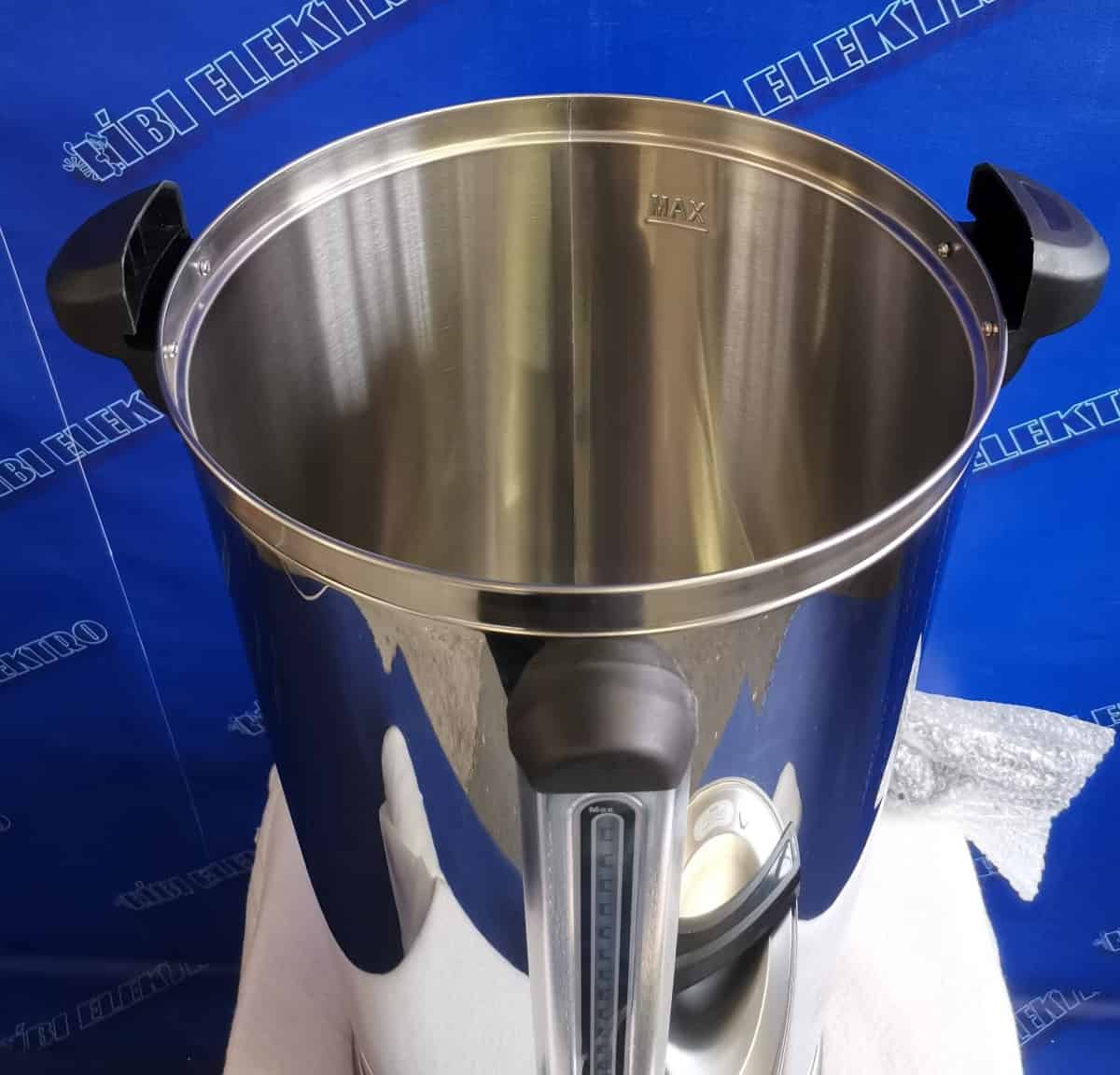 Ideálne pre prípravu väčšieho množstva čaju, kávy i vareného vína Telo z nerezovej ocele Nastaviteľná termostat 30 ° C až 110 ° C Výkon 2500W Vnútorný priemer 29 cm Výška 64,5 cm Celkový priemer 37,5 cm Napájanie 220 V Dĺžka prívodného kábla udržiavanie teploty nápojov Skryté výhrevné teleso Plynulá regulácia teploty Vodoznak pre kontrolu množstva Ochrana proti prehriatiu Veko s bezpečnostným zámkom Koch-Stop Jednoplášťový Objem 30 litrov