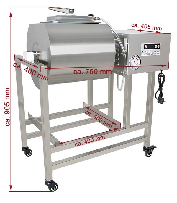 Dobu vákuovania a dobu miešania je možné individuálne nastaviť digitálne na miešačke. Môžete si tiež vybrať medzi rôznymi otáčkami bubna.