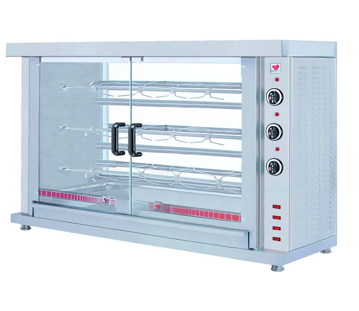 Šírka (mm):1320 Hĺbka (mm):460 Výška (mm):855 Napätie (Volt):400 Výkon (kW):7.8 Typ:Elektrický Kapacita v jednotkách za čas:12-15 kurčiat 1,5-1,7 kg Počet prvkov:3