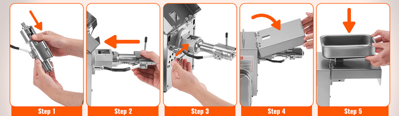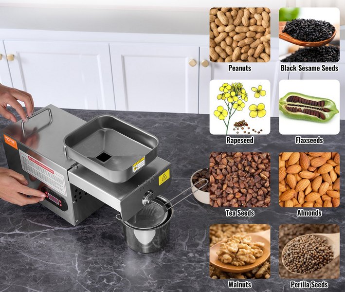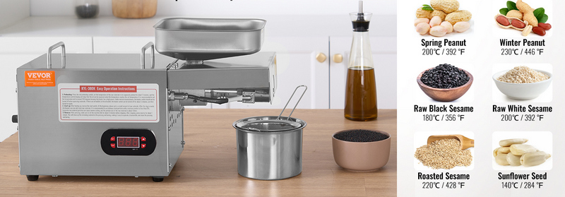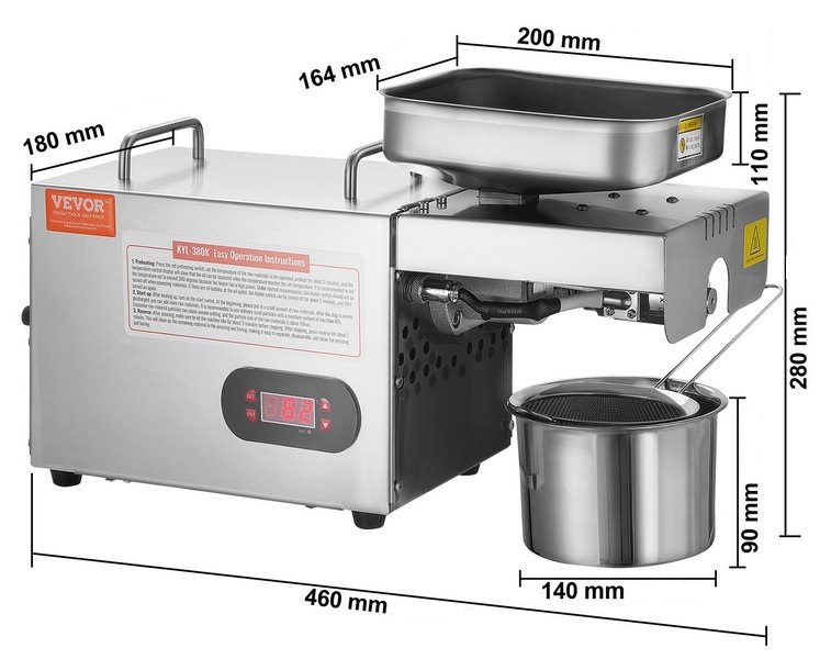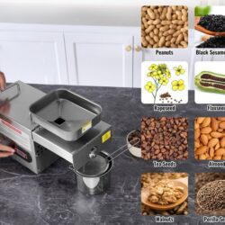 Efektívne lisovanie za tepla: vybavený výkonným 850W motorom z čistej medi, ktorý je schopný lisovať 1,5 kg oleja za hodinu s nepretržitou 24hodinovou prevádzkou. Náš stroj na extrakciu oleja využíva princíp vysokoteplotného lisovania za tepla na zvýšenie rýchlosti ťažby oleja.