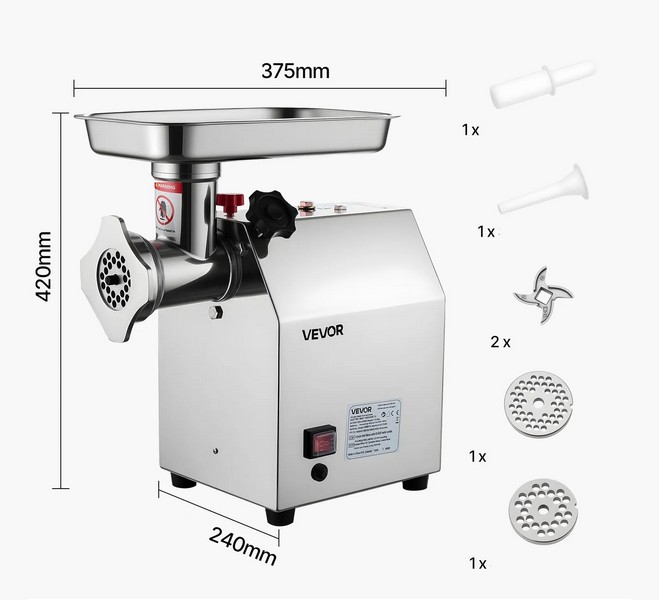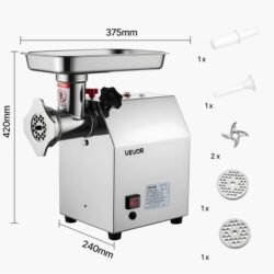 Bohaté príslušenstvo: Súčasťou balenia sú dve ostré nože, dve mlecie dosky, nadstavec na plnenie klobás a mäsový prepichovač. Vhodné na spracovanie bravčového, hovädzieho, zveriny, kuracieho i rýb. Umožňuje aj výrobu domácich klobás a ďalších produktov.