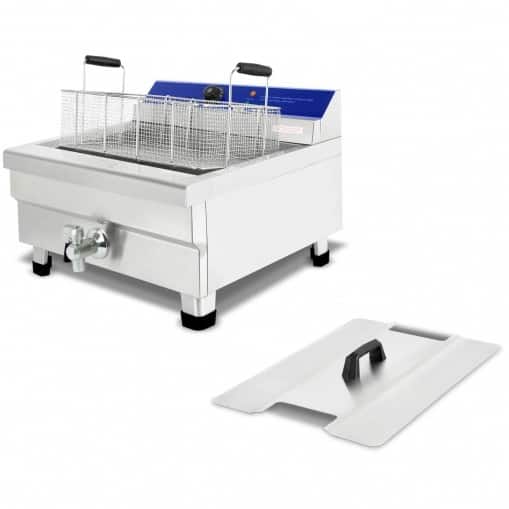 Gastro fritéza s telom z nerezovej ocele, vypúšťacím kohútikom a výkonom 3kW Studená zóna zabraňuje prepaľovaniu tuku