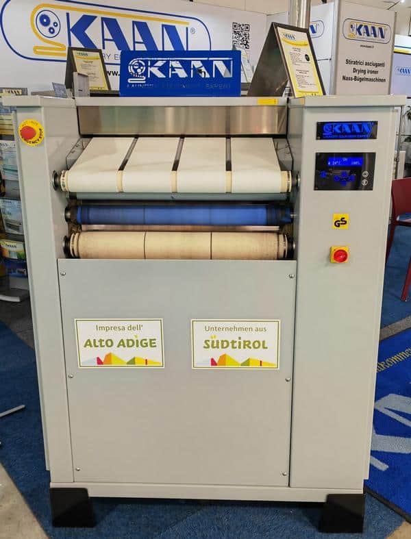 Sušiaci žehliaci stroj KAAN je ideálny pre reštaurácie, penzióny, hotely, malé práčovne a ďalšie komerčné aktivity s výkonom od 12 kg/h do 200 kg/h. Zásadným faktorom pre úsporu času je výber správnej veľkosti mandľa. Preto majú žehliace stroje KAAN priemer 320 mm, 350 mm, 500 mm a 700 ma dĺžku valca od 130 cm do 310 cm. Vešanie a vyberanie bielizne, jej skladanie alebo navlhčenie a sušenie v sušičke už nebude nutné. Ušetrite čas a peniaze so sušiacim žehličom KAAN. Veľa práce sa dá rýchlo dokončiť s malým počtom ľudí vďaka žehličkám KAAN. Regulácia teploty v digitálnom zariadení je tak už automaticky naprogramovaná – stačí sa jednoducho dotknúť tlačidla štart.