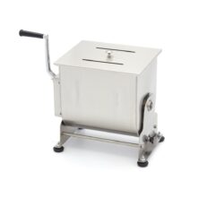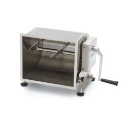 Mixovanie mäsa v tomto nerezovom mixéri je veľmi jednoduché: stačí otvoriť veko a naplniť nádrž požadovaným množstvom mäsa alebo ryby. Nádrž má objem 20 litrov a je vhodná na spracovanie 13 až 16 kg mäsa alebo rýb. Po pridaní hlavnej suroviny môžete pridať korenie, ako sú bylinky, orechy alebo zelenina. Aby ste všetko dobre premiešali, otáčajte rukoväťou, kým nedosiahnete správnu štruktúru mäsa alebo náplne. Mixér na mäso sa môže otáčať v dvoch smeroch. Výklopná nádrž je veľmi praktická, keď chcete obsah vybrať, a ponúka aj veľkú výhodu pri čistení. Pre dobrú priľnavosť na takmer akomkoľvek povrchu je mixér na mäso vybavený štyrmi gumovými nožičkami.