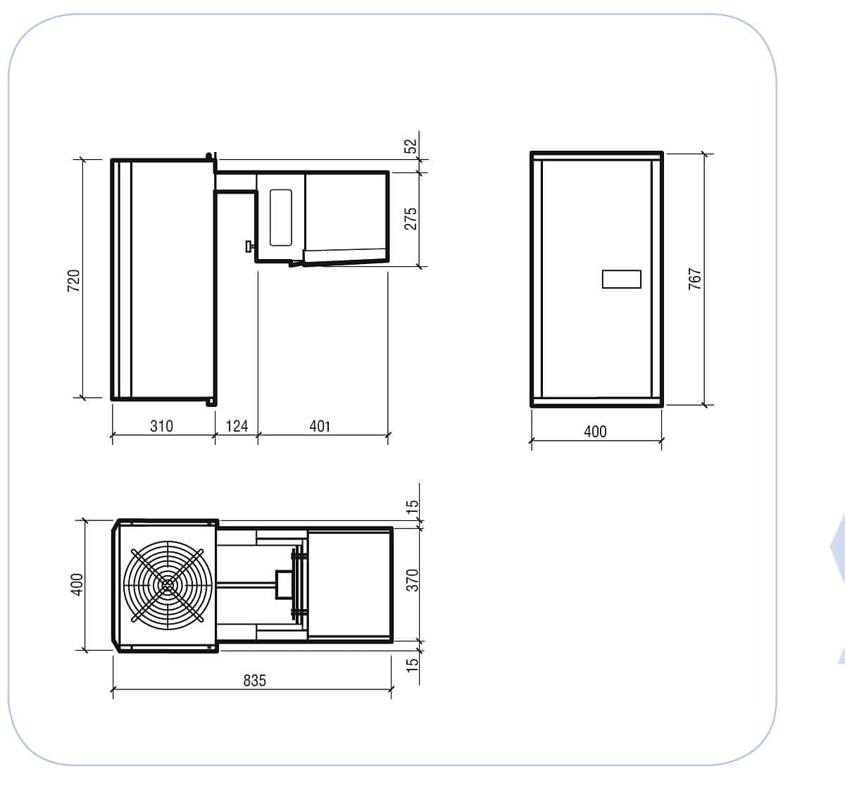 Šírka (mm):400 Hĺbka (mm):835 Výška (mm):767 Napätie (Volt):230 Výkon (kW):1,35 Chladiaci prostriedok:R 452 A Rozsah teplôt (°C):-18/-25 Chladiaci výkon (W):>3,5-4,7 Klimatizácia:Nie