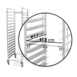 Vzhľadom na to, že v pohostinstve je toho často potrebné prevážať veľa, je v pekárňach, reštauráciách, hoteloch alebo samoobslužných zariadeniach nepostrádateľný robustný vozík na podnosy. S týmto profesionálnym vozíkom je možné prepravovať príbory, riad, tácky, taniere a ingrediencie. Vozík má 16 políc, do ktorých je možné zasunúť tácky, zásobníky alebo taniere. Robustná konštrukcia tohto vozíka zaisťuje, že zvládne ťažkú prácu. Nohy sú opatrené nárazníkom a nechýba ani madlo pre ľahké premiestňovanie vozíka.