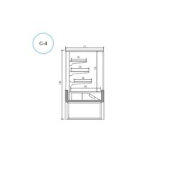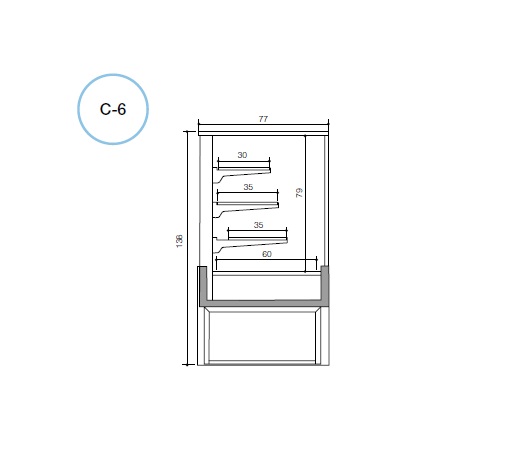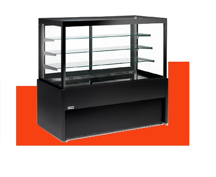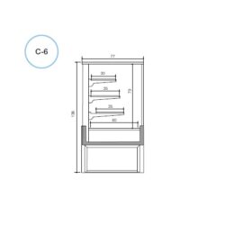 Teplá obslužná vitrína Čierne alebo šedé prevedenie Hĺbka: 77 cm Výška: 138 cm Šírka: 120 cm 3 police LED osvetlenie Čierna výstavná plocha Sklo s čiernym dekorom Zadné posuvné dvere Teplota +60°C