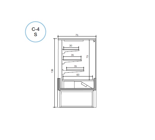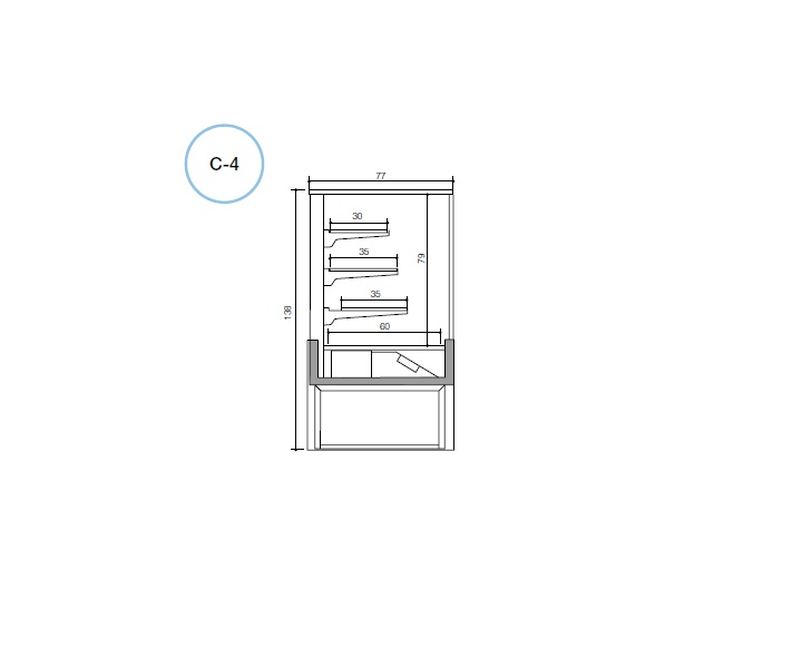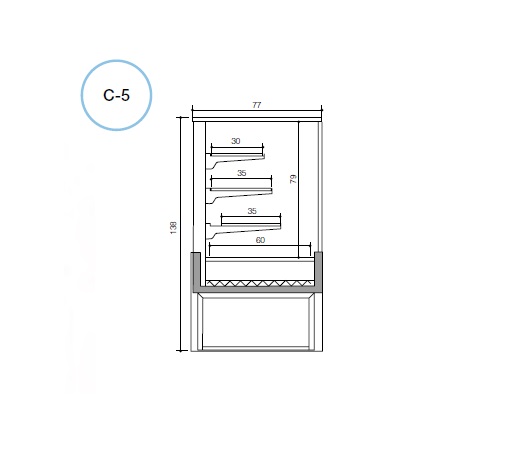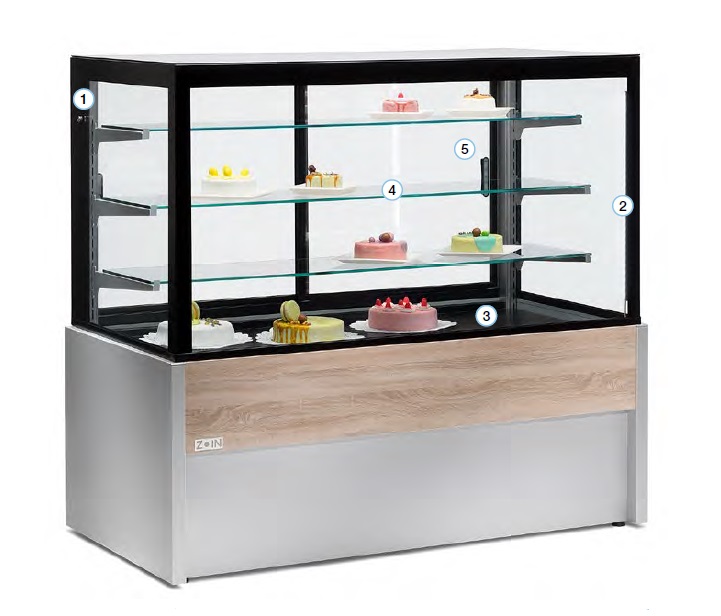 Teplá obslužná vitrína Čierne alebo šedé prevedenie Hĺbka: 77 cm Výška: 138 cm Šírka: 150 cm 3 police LED osvetlenie Čierna výstavná plocha Sklo s čiernym dekorom Zadné posuvné dvere Teplota +60°C
