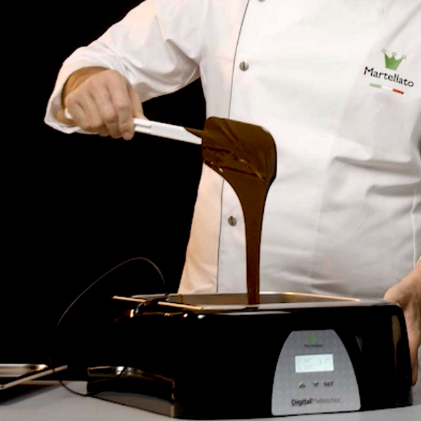 Ohrievač na čokoládu MCD101 je inovatívny produkt talianskej firmy Martellato. Je vyrobený z kvalitného plastu, ktorý je vhodný aj pre vyššie teploty. Ohrievač má vyberateľnú vnútornú nádobu a veko z nerezovej ocele a integrovaný termostat, vďaka ktorému je možné kontrolovať a meniť teplotu čokolády. Elektronická metla, ktorá je riadená vnútorným odporom pre optimalizáciu požadovaného výsledku, detekuje teplotu čokolády vonkajším povrchom. Vďaka tomu je možné rýchlejšie a presnejšie roztavenie čokolády. Na prednom paneli je možné nastaviť temperovanie čokolády buď ručne, alebo zvoliť jeden z prednastavených programov pre – bielu, mliečnu a horkú čokoládu.