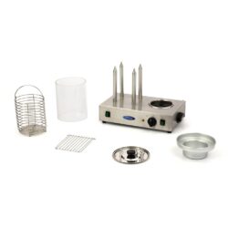 Potrebujete podávať tradičné hot dogy v žemli alebo treba udržiavať klobásu teplú? Potom je tento profesionálny ohrievač klobás nápadom pre vašu kuchyňu. S týmto ohrievačom párkov v rožku budete mať horúce párky vždy pripravené na servírovanie hosťom. Ohrievač párkov v rožku je vyrobený z nerezovej ocele a má veko, takže sa teplo nestráca, keď sú párky v ohrievači. Tento model je tiež vybavený štyrmi zvislými ohrievacími tyčami, na ktoré môžete napichovať žemle s párkami v rožku. Okrem toho vykurovacie tyče vytvárajú v žemli priehlbinu, do ktorej môžete párok ľahko vložiť.