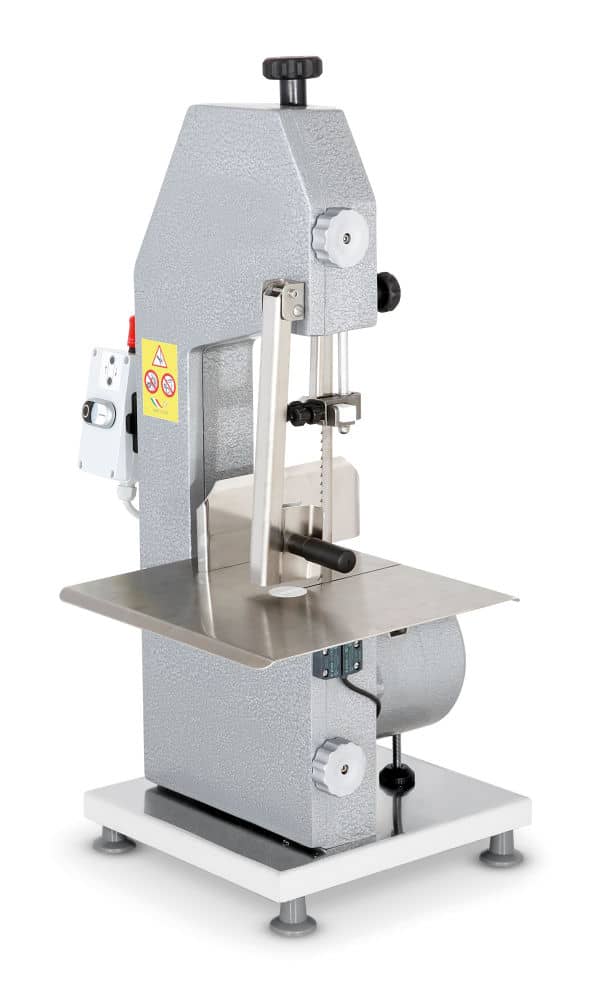 Elektrická pílka na kosti – 850 mm – 750 W | Hendi 282502 je profesionálne zariadenie, ktoré je určené na mechanické spracovanie mäsa a mäsových produktov. Určená je do mäsiarstva, obchodov i rôznych gastro zariadení. Tlačidlo núdzového zastavenia Tlačidlo núdzového vypnutia S brzdou motora Mikrospínač pre uzavretie krytu Regulácia hrúbky a výšku rezu – dĺžka noža: 1550 mm Rozmery rezu: 170x(V)150 mm Pracovná plocha: 300×300 mm
