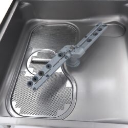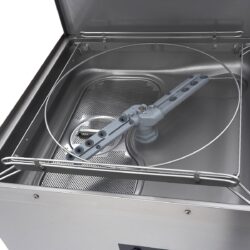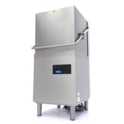 Vo veľkých stravovacích zariadeniach, ktoré pracujú s veľkým množstvom špinavého riadu, je táto priechodná umývačka veľkým prínosom. Koše môžete prejsť rýchlo, takže manipulácia s riadom je veľmi efektívna. Táto profesionálna umývačka má dva umývacie programy: 90 a 180 sekúnd, každý vrátane 15 sekúnd oplachovania. Teplota umývania je 60 °C a cyklus oplachovania 85 °C, vďaka čomu všetko rýchlejšie schne. Je to tiež veľmi tichá umývačka, ktorej prevádzková hlučnosť je nižšia ako 65 dB. Táto umývačka riadu spotrebuje iba 2,8 l vody na jeden cyklus. Má ovládací panel s krytím IPX4, takže sa voda nedostane za ľahko ovládateľné tlačidlá. Obsahuje štyri tlačidlá: tlačidlo zapnutia/vypnutia, tlačidlo na spustenie/zastavenie umývacieho cyklu, tlačidlo na nastavenie umývacieho programu a tlačidlo na spustenie vypúšťacieho čerpadla. Táto umývačka je tiež vybavená ukazovateľmi teploty a oplachu.