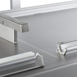 Kryt aj vnútro baliaceho stroja sú vyrobené z nerezovej ocele. Vďaka tomu je robustný a zároveň sa veľmi ľahko čistí. Na dôkladné vyčistenie stačí vlhká handrička, voda a jemný čistiaci prostriedok. Stačí utrieť všetky povrchy. Po vyčistení osušte všetky časti mäkkou handričkou.