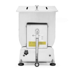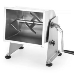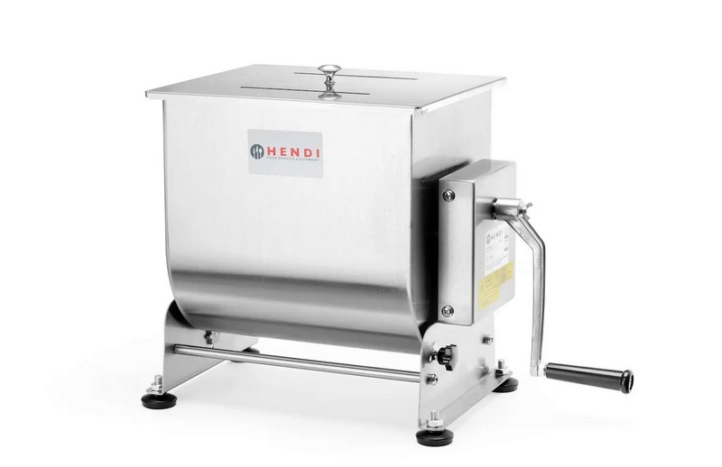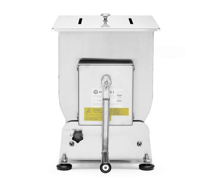 Zariadenia na výrobu mäsových výrobkov v malom množstve Vyrobené z nerezovej ocele AISI 304 Kľučka z hliníkovej zliatiny Výklopná vaňa pre ľahšie vybratie pripravenej zmesi Dvojitá ochrana proti náhodnému uvoľneniu vane Ručné miešanie s odnímateľnou kľukou Pri modeli 282281 rozobrať Kryt s rukoväťou je súčasťou výrobku Veľmi jednoduché na používanie a čistenie