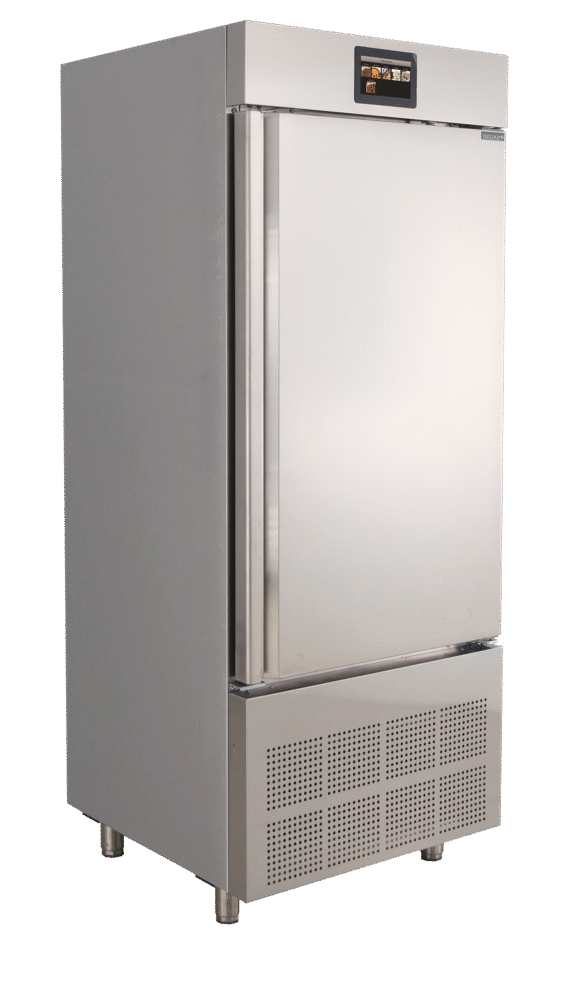 Šokový schladzovač / zmrazovač s ovládačom s dotykovou obrazovkou Šokové schladzovače / zmrazovače slúžia výborne pre zefektívnenie výrobného procesu stravovacích prevádzok, kedy vyrobené jedlá možno šokovo schladiť alebo zmraziť, a uchovať ich tak pre neskorší výdaj. Šokové schladzovanie prebieha podľa vopred stanovenej schladzovacej krivky, aby pri procese bol maximálne potlačený výskyt a množenie mikroorganizmov. BLCA-X je dodávaný s novým ľahko použiteľným ovládačom s dotykovou obrazovkou. Tu si môžete vybrať jeden z prednastavených programov, alebo si môžete vytvoriť a uložiť vlastné programy. BLCA-X je vhodný pre gastronádoby 1/1 a nádoby euronorm (nie sú súčasťou dodávky).