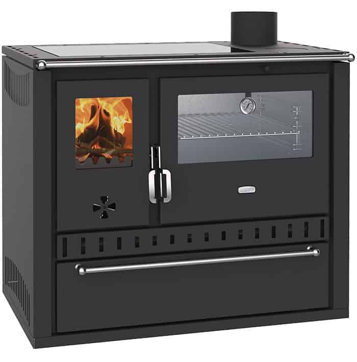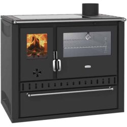 Farebné prevedenie: čierna Teplovodný výmenník s výkonom 10 kW Nerezová rúra na pečenie Presklené dvierka rúry vybavené teplomerom