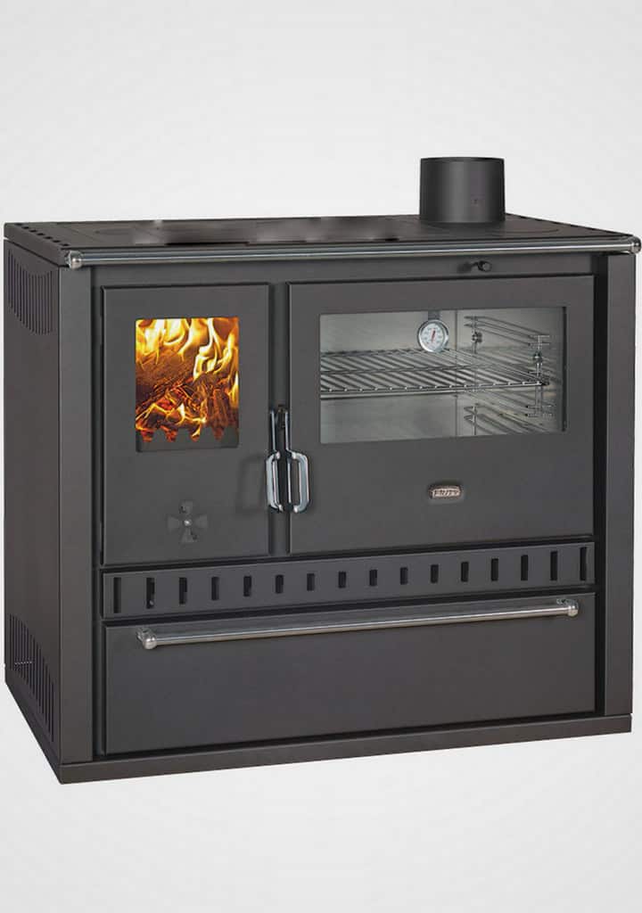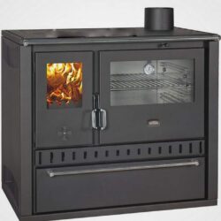 Farebné prevedenie: čierna Teplovodný výmenník s výkonom 10 kW Nerezová rúra na pečenie Presklené dvierka rúry vybavené teplomerom