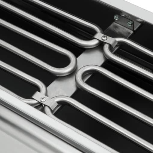 - Gril z nerezovej ocele je robustne spracovaný a vďaka grilovacej ploche 76,5 x 23,5 cm ponúka dostatok miesta pre vaše jedlo.