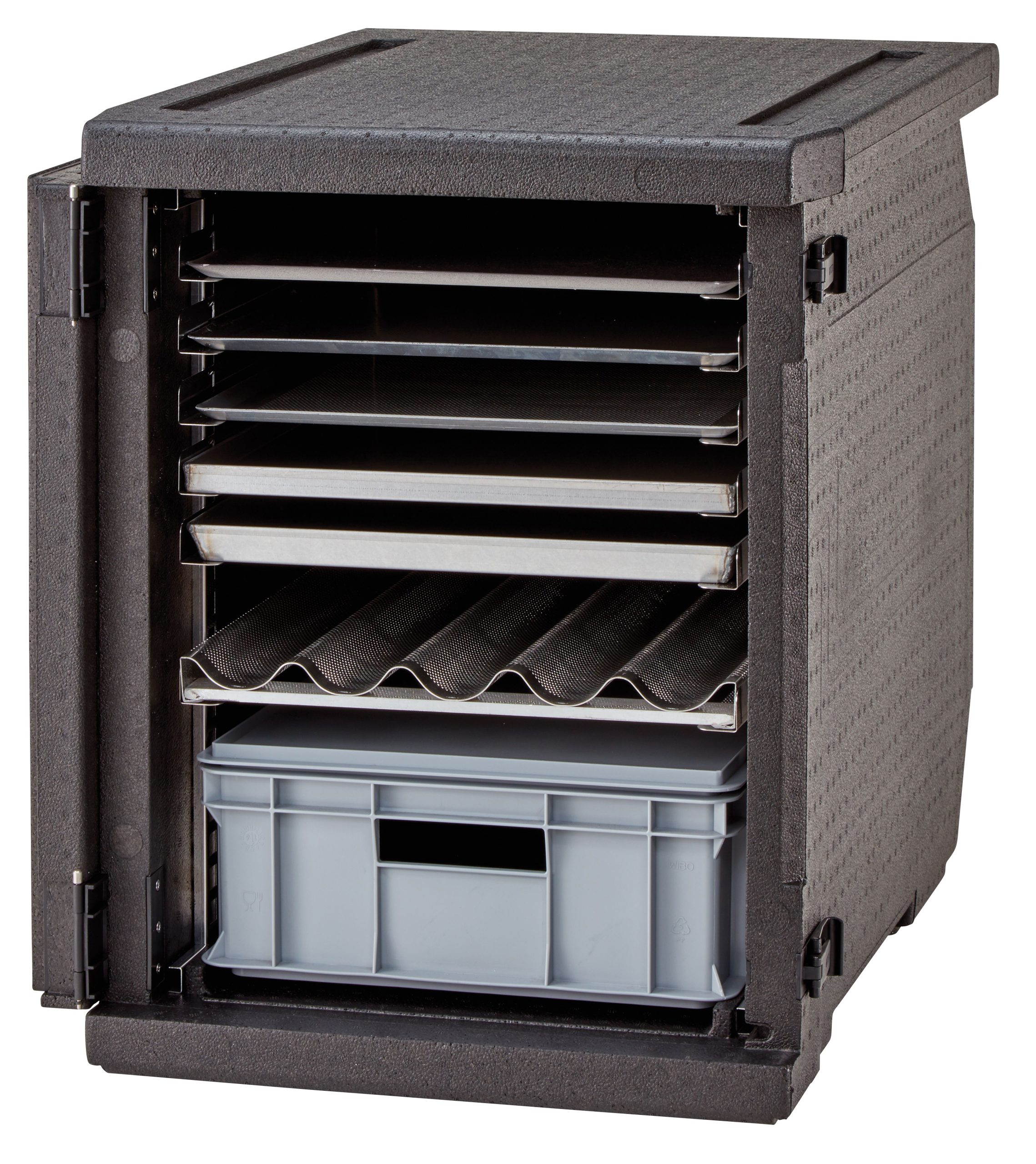 Objem: 155 l 2 páry drážok (nerezová oceľ) pre tácky 600 x 400 mm Plynule nastaviteľná vzdialenosť medzi drážkami
