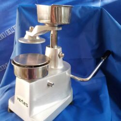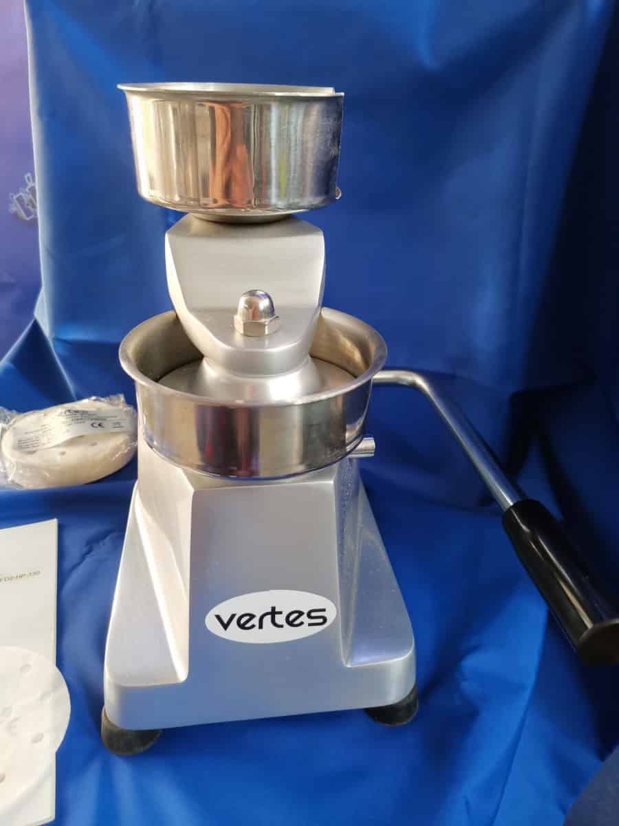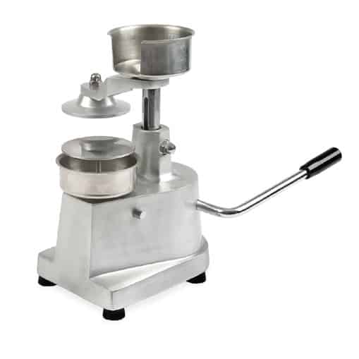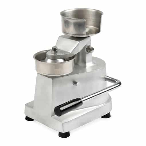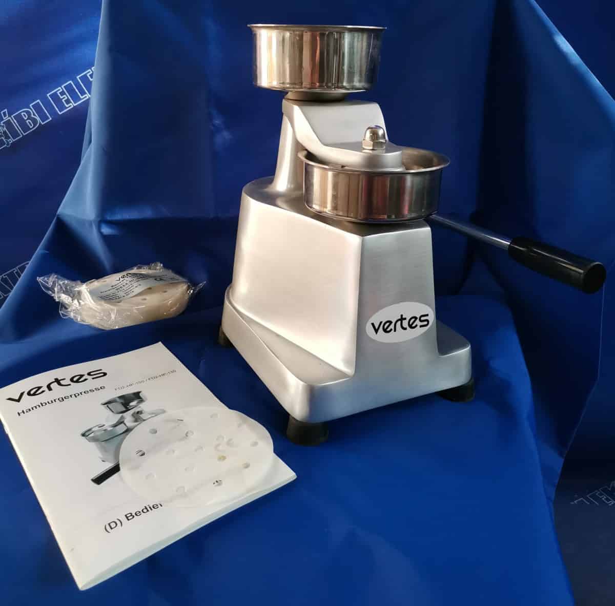 Tvarovací stroj na hamburgery je nvelkým pomocníkom v každej gastro prevádzke. Veľmi ľahko môžete pripraviť hamburgery z mletého mäsa, rýb alebo zeleniny Kryt je vyrobený z hliníka, a pracovnú nádrž a držiak fólie z vysokokvalitnej ušľachtilej ocele. Precízne prevedenie sa domnieva, že je toto profesionálne zariadenie spoľahlivé a trvanlivé. Všetky súčasti sú ľahko prístupné, a preto sa ľahko čistia. Štyri protišmykové gumové nohy na spodnej strane zaisťujú pevnosť a stabilitu. Ovládanie tvarovacieho stroja na hamburgery je veľmi jednoduché a rýchle. Po naplnení nádrže vybraným mäsom tvorí zariadenie kompaktné, okrúhle hamburgery. Vďaka precíznej forme pri rovnakom naplnení získavate vždy perfektné a rovnaké hamburgery s priemerom 100 mm. Na vytváranie hamburgerov sa používajú papierové disky s priemerom 100 mm. Vďaka špeciálnemu zásobníku sú disky uložené a umiestnené tak, bola umožnená rýchla a účinná prevádzka. Vďaka týmto diskom mäso nepríde do priameho kontaktu s rukami, čo je veľmi hygienické. Súčasťou balenia sú aj malé papierové disky. v balení je stroj a 500 papierových diskov