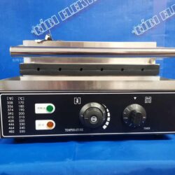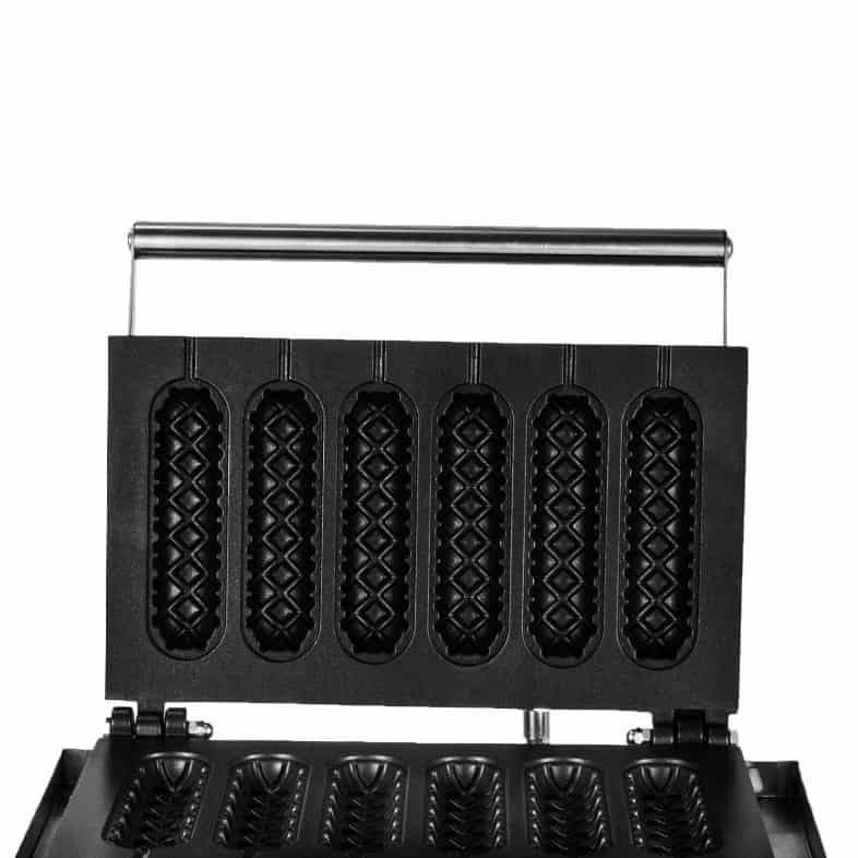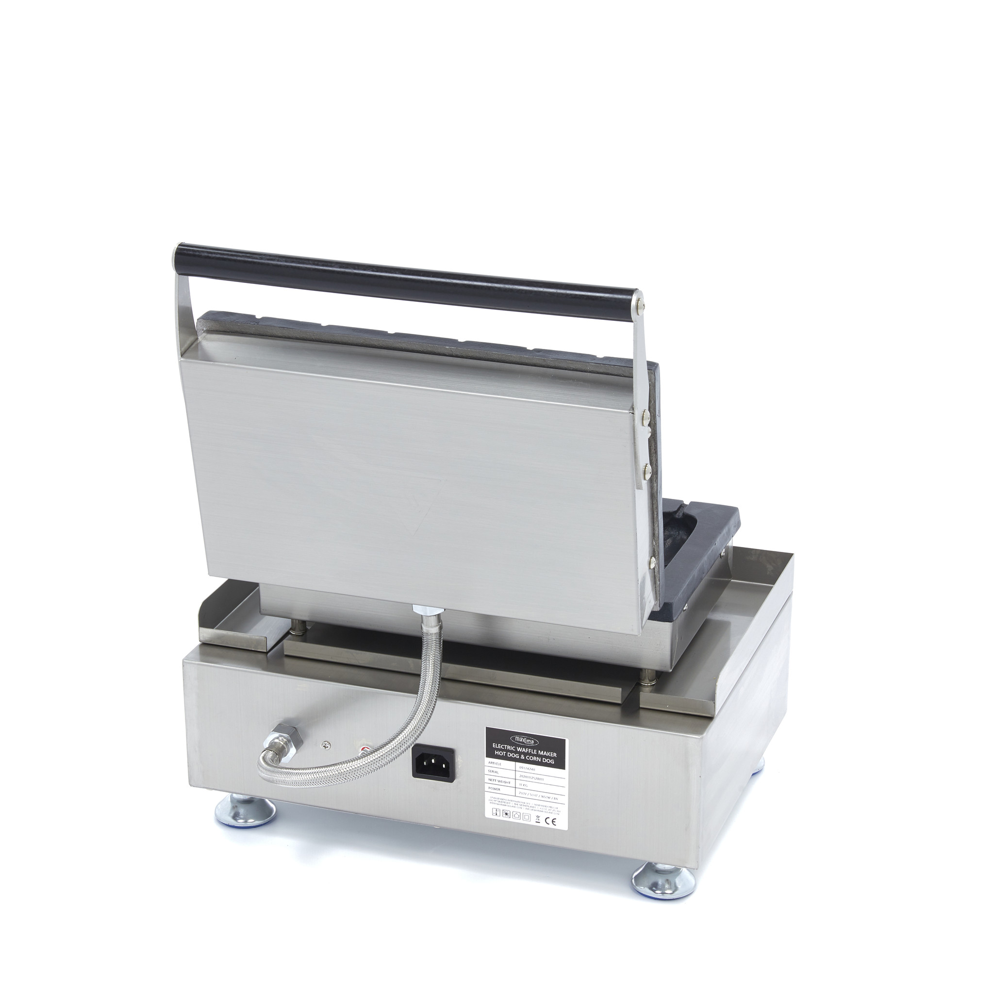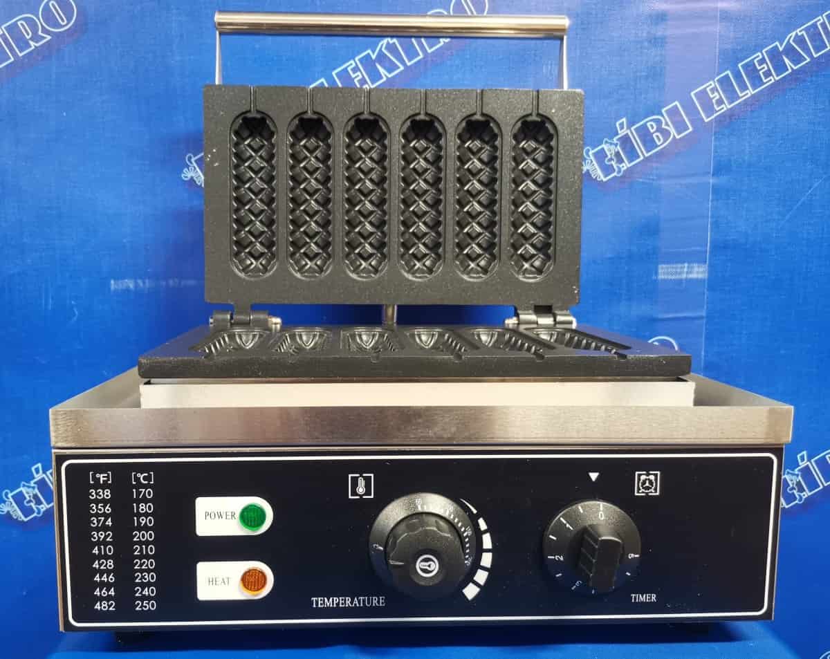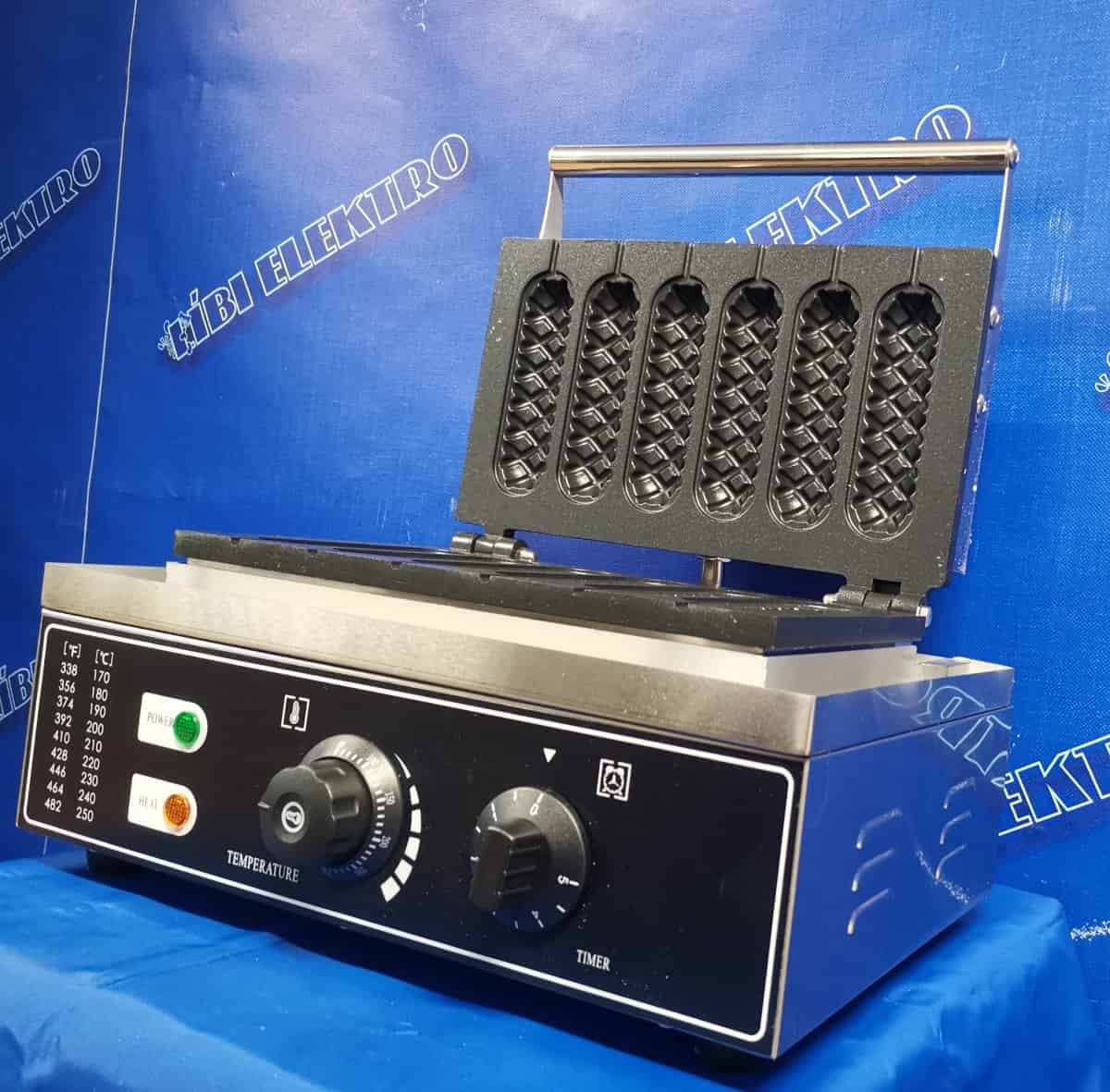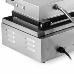 Výrobník vaflí na špajli Silné pečiace doštičky s obojstraným výhrevom Nerezové prevedenie Teflónové panvice na pečenie Časovač so signálom Bezpečné teplo nevodivá rekojeť napätie 220V – 240 V Nastaviteľný termostat 50 ° C až 300 ° C Výkon 1500 W Časovač 0 42 cm Určené pre komerčné použitie