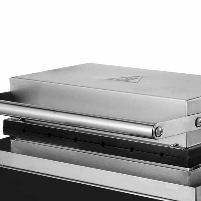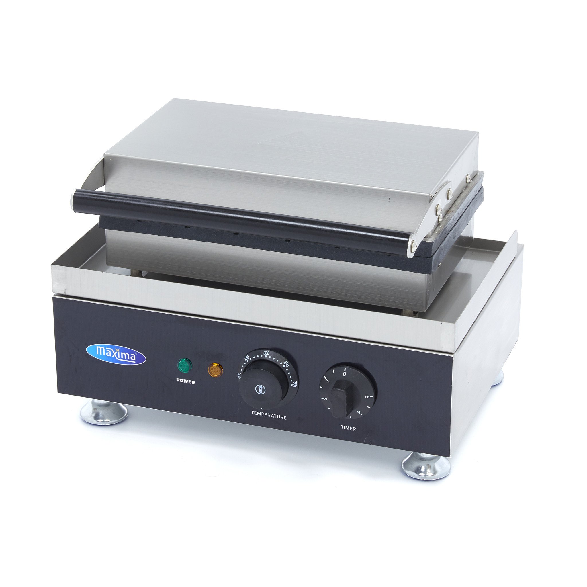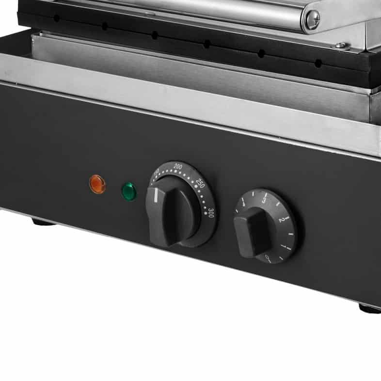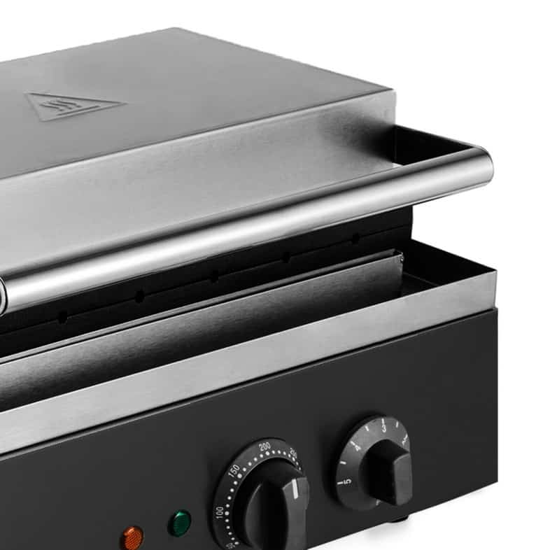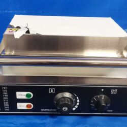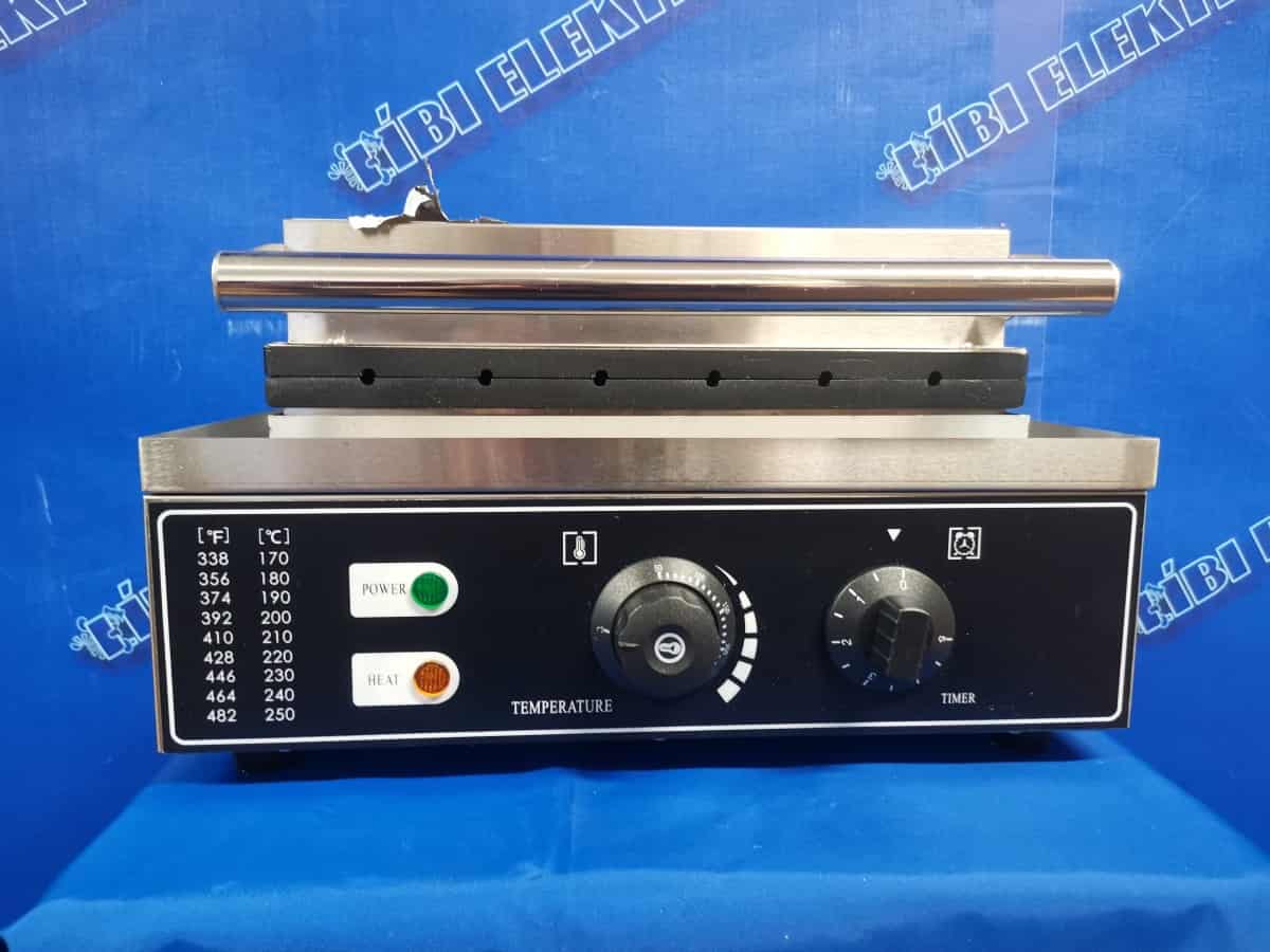 Výrobník vaflí na špajli Silné pečiace doštičky s obojstraným výhrevom Nerezové prevedenie Teflónové panvice na pečenie Časovač so signálom Bezpečné teplo nevodivá rekojeť napätie 220V – 240 V Nastaviteľný termostat 50 ° C až 300 ° C Výkon 1500 W Časovač 0 42 cm Určené pre komerčné použitie