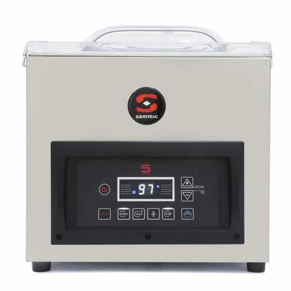 Vákuovačka SE-310 firmy Sammic je profesionálne zariadenie na hermetické balenie potravín. Dvojitá línia zvaru zaručuje tesné uzavretie. Model SE-310 je vybavený najkvalitnejšou olejovou vákuovou pumpou firmy Busch. Vákuovo balené potraviny si dlhšie zachovávajú sviežosť a sú dokonale chránené pred pôsobením vonkajších faktorov (napr. znečistenie, vlhkosť). Navyše odsatie vzduchu umožňuje zníženie objemu niektorých potravín. Funkcia zvárania sáčkov bez odsávania vzduchu umožňuje tesné balenie delikátnych potravín bez zmeny ich štruktúry alebo potravín nepravidelného tvaru bez rizika ich deformácie. Postupné vytváranie vákua – používané v prípade pórovitých potravín, spracovaného mäsa, emulgovaných zmesí s uväznenými vzduchovými bublinkami. Vonkajšie vákuové balenie (Vac-Norm) – prevedenie procesu vyžaduje využitie špeciálnych gastronádob. Na využitie funkcie Vac-Norm je nevyhnutné zakúpenie externej vákuovej zostavy Vac-Norm, ktorá sa skladá z hadice a spojky s komorou vákuovačky. Dry Oil: Vysúšanie čerpadla – funkcia umožňujúca udržiavanie vysokej kvality oleja odstraňovaním nadbytočnej vlhkosti, vďaka čomu môže zariadenie dosiahnuť najvyššiu úroveň vytvárania vákua. Režim marinovania – slúži na opakovanie cyklu vytvárania vákua a uvoľnenie vzduchu z vrecka, čo umožňuje optimálne marinovanie potravín v najkratšom možnom čase. Je vyrobený z tých najkvalitnejších materiálov, vďaka čomu má dlhú životnosť a je odolný voči vonkajším faktorom. Priehľadné veko umožňuje pozorovať celý proces balenia. Program odsávania kontrolovaný senzorom je určený predovšetkým pre potraviny s jemnou štruktúrou. Zariadenie je vybavené dvojitou zváracou lištou, ktorá zaisťuje tesnosť a stálosť balenia. Komora je vyrobená z jedného kusu ocele, čo uľahčuje udržanie baličky v čistote. Správny výkon, výkonné čerpadlo a objemná komora zaisťujú rýchle balenie potravín veľkých rozmerov. Digitálny ovládací panel s veľkým farebným displejom umožňuje nastaviť teplotu zvárania a parametre spojené s časom cyklu. Baličky umožňujú uzatvárať vrecká s marinovanými výrobkami zachovaním ich objemu, pretože balenie prebieha bez odsávania vzduchu. Farebný LCD displej o veľkosti 3,9″ Podsvietená dotyková klávesnica je vyrobená z plastu odolného proti poškriabaniu Max. tlak vákua: 2 mbar Systém Bluetooth umožňujúci bezdrôtové spojenie so špeciálnou aplikáciou Dĺžka lišty: 320 mm Výkonnosť vákuovej pumpy: 10 m3/h Výkonnosť vákuovej pumpy: 10 m3/h Vákuová pumpa BUSCH